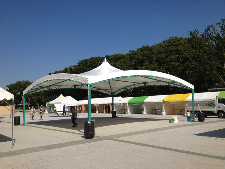 テントの強度は使われる構造部材、設計に掛かるコストや時間などで大きく差が発生します。一般的にはより大規模なものほど建造物に限りなく近い設計基準を指針に据えることから、そうしたものほど高強度と言えます。ただこれに関してはご利用の場所や用途によって、基準は大きく異なるものと思います。基本的にはその用途に合ったものがコスト面、運用面でも有利になります。(参考.鉄骨20~30年、布10~20年)