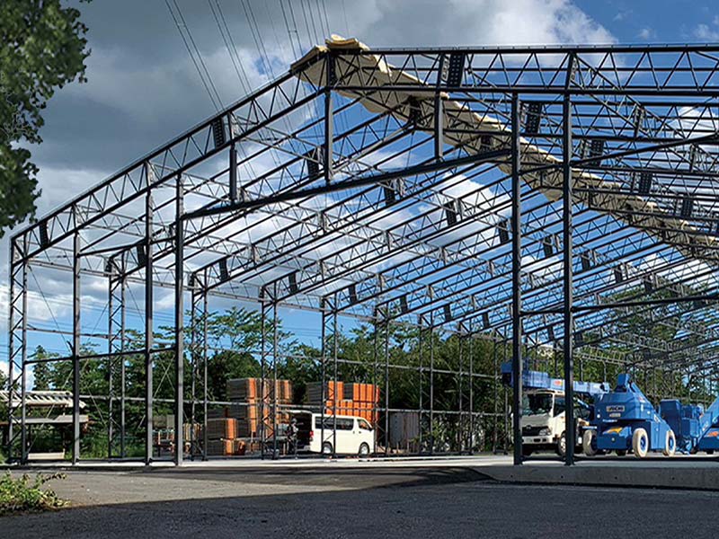 テント倉庫の製造で培った高度な技術を応用し、建築の「骨」を支える高品質な鉄骨製作を提供します。熟練の技術により、設計から精密な加工、熔接まで自社で一貫対応。