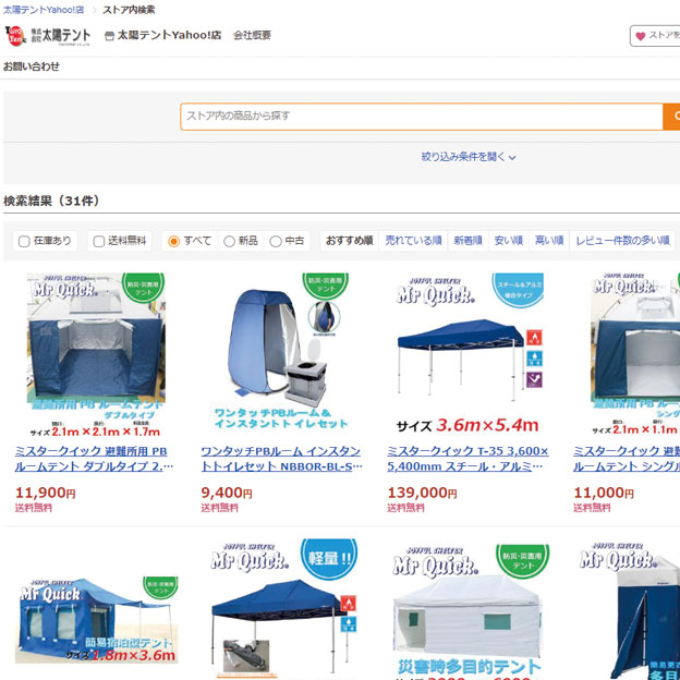 YAHOO!ショッピングで、出店しております! テント買うなら~♪『安心!創業100年の太陽テント』 ぜひぜひご利用下さい! ・かんたんテント(Mr.Quick) ・災害用テント ・トラックシート お知らせ #かんたんテント #テントハウス #テント倉庫 #トラックシート #太陽テント #災害用テント 裁断承ります!! 中古テント倉庫 買取致します!! 関連ページ 虹が出てました~‼ 健康優良企業を目指しています!! ”トキメキ”に当社が掲載されました!! テント劇場として、深海洋燈様にご利用頂きました! カッティングシート施工承ります! 全天候型 屋内練習場 アメブロ初めました~♪