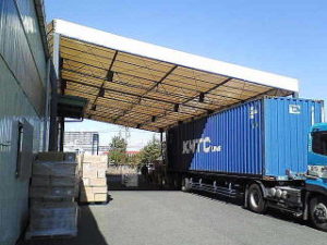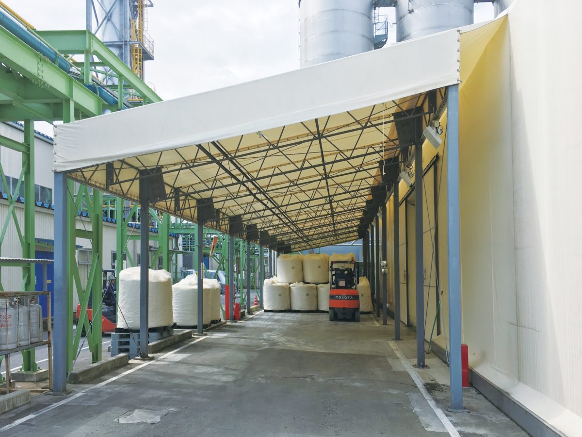 工場や倉庫の出入口に連結する形で設置できスペースの拡張が容易、雨天時の作業環境を改善します。