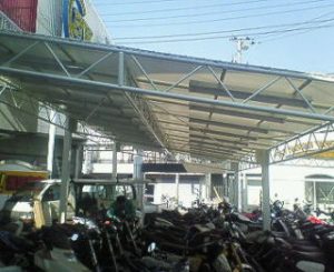 柱と屋根のみで構成され、壁がないため通気性に優れ、フォークリフトや車両の出入りもスムーズ。雨天時の作業効率向上や製品・資材の保護に最適です。既存施設への後付けも可能で、短納期・低コストで導入できるのが特長。
