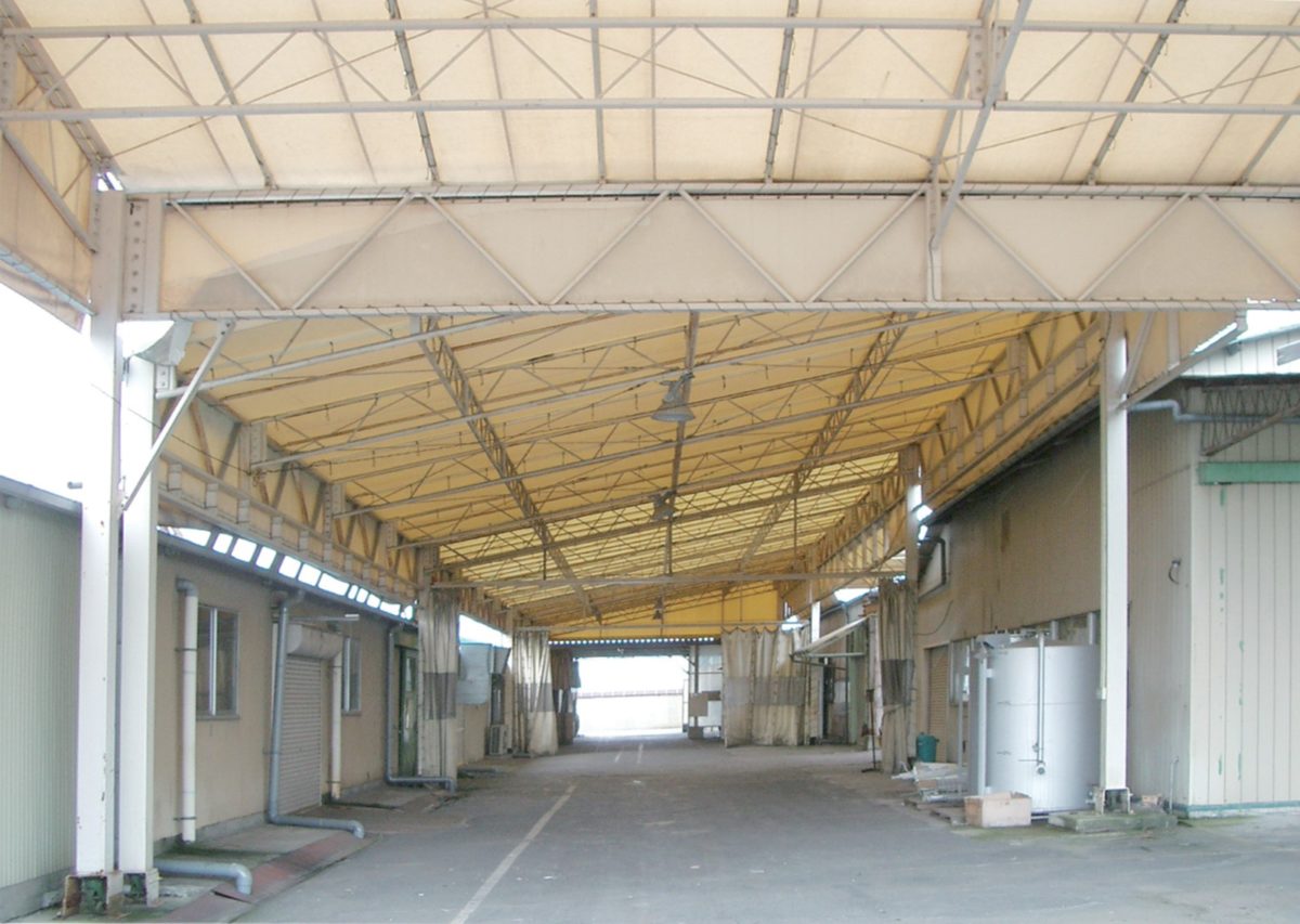 上屋・下屋テントは、屋外の荷捌き場や作業スペース、仮設通路などに設置できる、開放型の屋根構造物です。