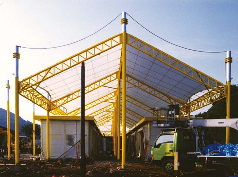 従来の鉄骨建築に比べて施工期間が短く、コストを抑えながらダイナミックなデザインを実現。耐候性・耐久性に優れており、イベント施設やスポーツ施設、物流拠点など幅広い用途でご利用いただけます。